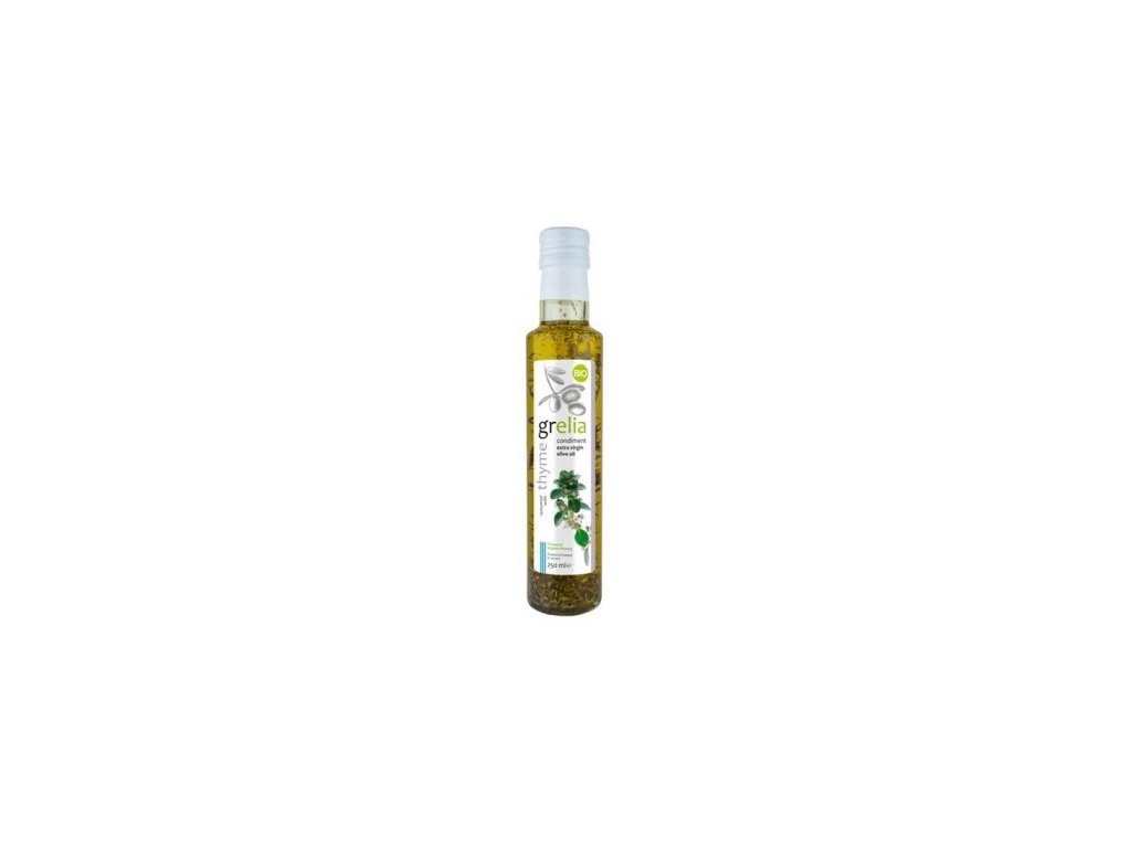 Složení: Extra panenský olivový olej a tymián ve skleněné láhvi, 250ml.